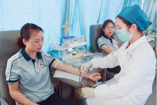 捐一份血液,传递一份爱心。填表登记、血压测量、血样检验、排队献血……,活动现场,参加献血的员工严格按照献血程序有条不紊地开展献血活动。无偿献血车内,一袋袋血液传递着血浓于水的友爱之心,一张张义无反顾的笑脸展现出乐于奉献的公益情怀,经过血液检样符合献血标准的人员纷纷挽起袖子,献出自己的爱心。