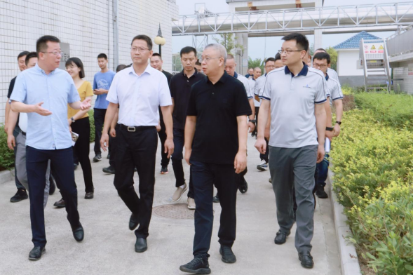 8月18日,副市长袁明带队到集团督导凯江污水处理厂运行情况。区委书记胡斌,区委常委、副区长刘军参加。集团党委书记、董事长陈宁陪同参加调研。