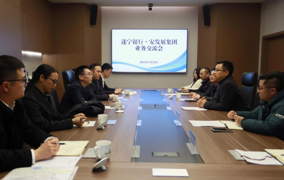1月10日,遂宁银行绵阳分行行长汪开利带队到williamhill官网集团开展业务交流。集团党委书记、董事长陈宁参加。