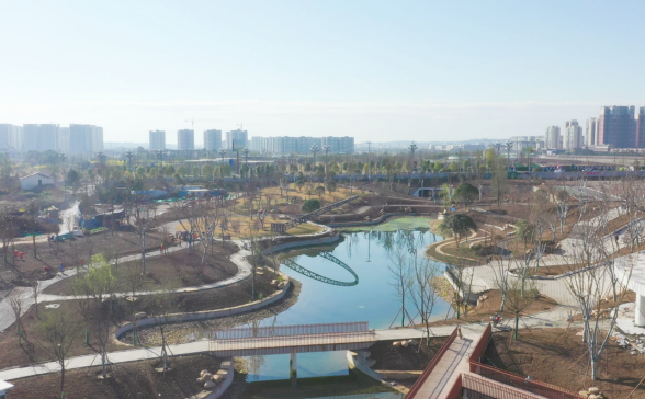 北湖公园项目位于辽安路北侧,占地约3.9万平方米。建设内容包括附属建筑、绿化景观、游园道路等配套设施建设。自2023年2月份开始建设以来,集团公司统筹各方力量,精准组织施工,秉承同南湖公园一样的“亲水”设计理念,打造了“星环”水幕、观景栈桥及游客步道等一系列景观设施,为市民提供了一处休闲、游览、娱乐的新去处。