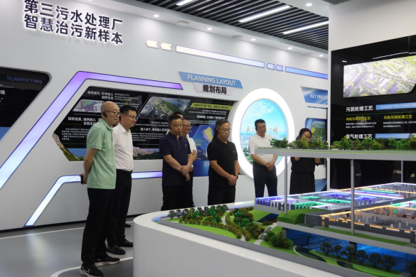 任晓军一行先后来到水资源循环利用研究中心、集团本部,实地参观了智慧水务展厅建设、数字化管理系统开发运行情况,观摩了再生水处理工艺流程,听取了再生水利用现状、全区水质研发、技术中心创建、数字化系统开发建设及下一步智慧水务建设规划等相关情况汇报。