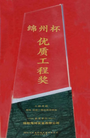 绵阳海珂实业有限公司海珂·花郡二期花熙府项目荣获“绵州杯”优质工程奖