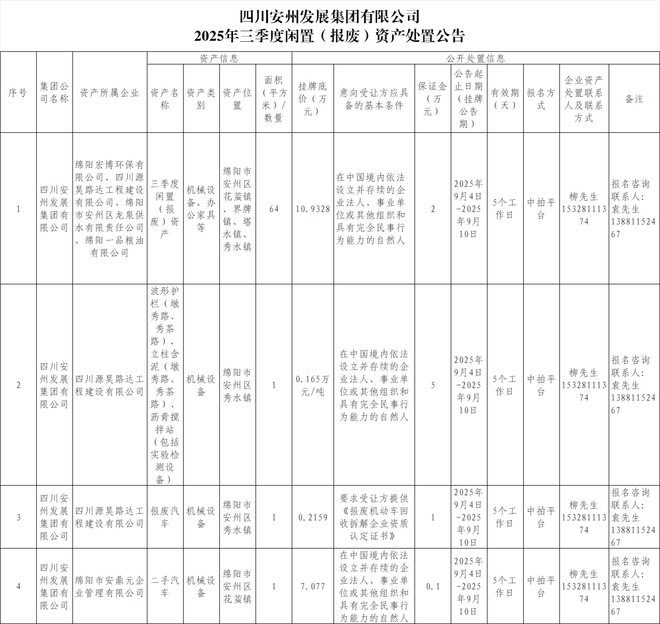 资产进行处置。处置公告如下。